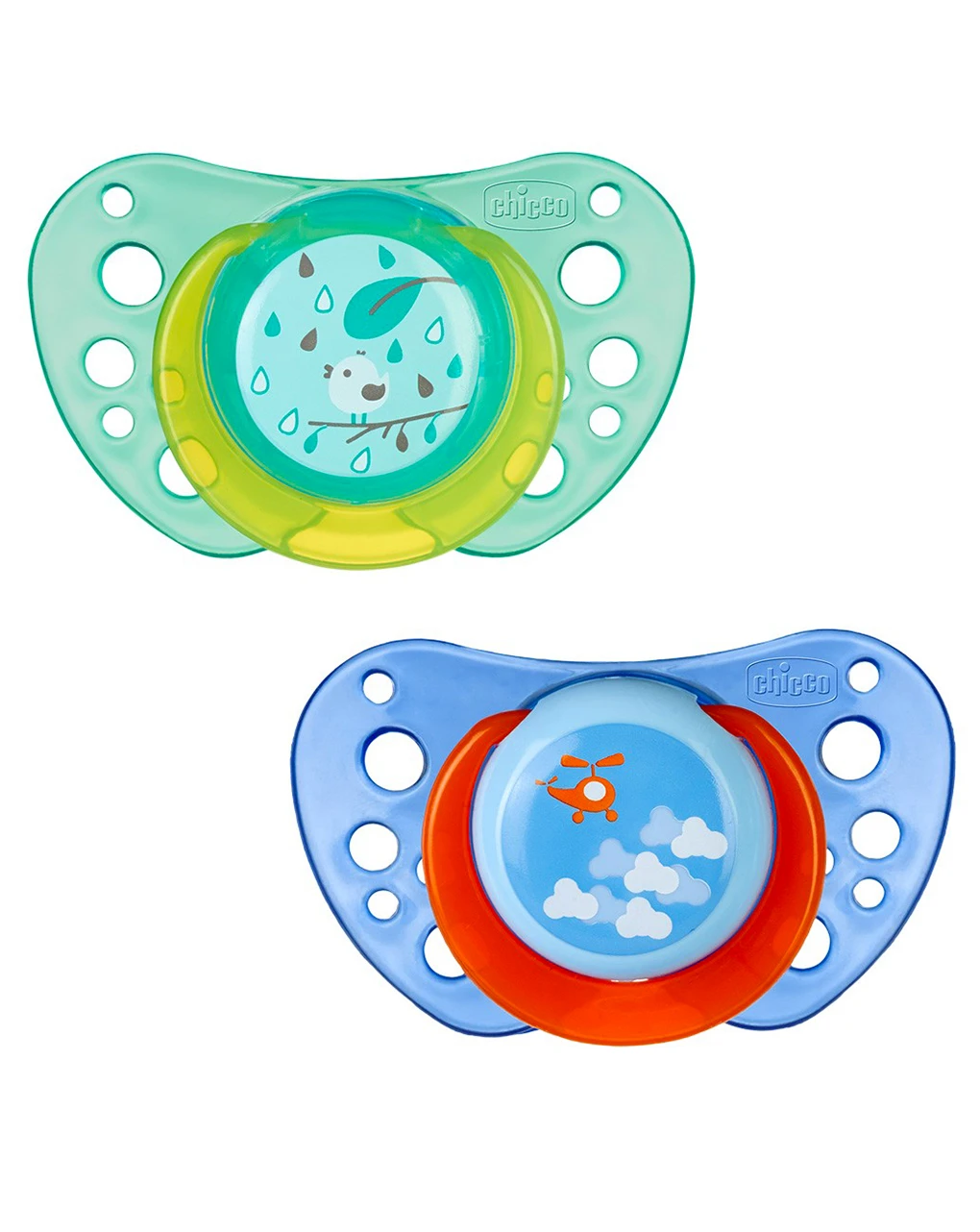 Massima areazione per la pelle del tuo bimbo. Numerosi fori anti-irritazione che garantiscono la circolazione dell’aria evitando il ristagno della saliva e lasciando la pelle libera di respirare. Forma ergonomica che si adatta al viso del bambino, garantendo lo spazio corretto per il naso e il mento. Bordi arrotondati per appoggiarsi delicatamente sulla pelle. Tettina Active in Silicone, materiale trasparente e igienico, insapore e inodore, che non si deforma nel tempo. 12m+. Pack 2 pezzi.