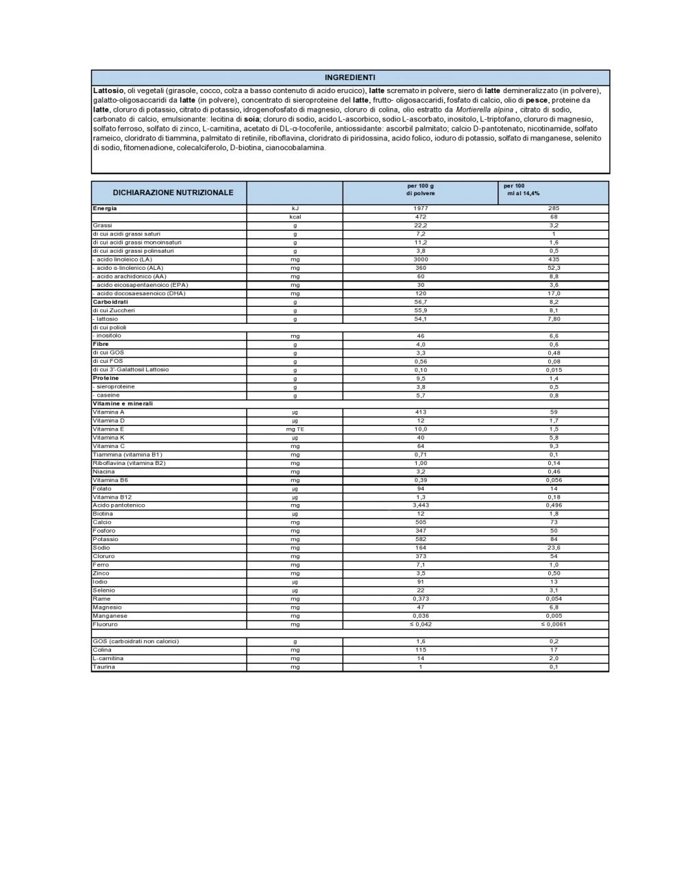 Il prodotto è indicato per l’alimentazione del lattante dal 6° mese compiuto al 12°, quando il latte materno manca o non è sufficiente.