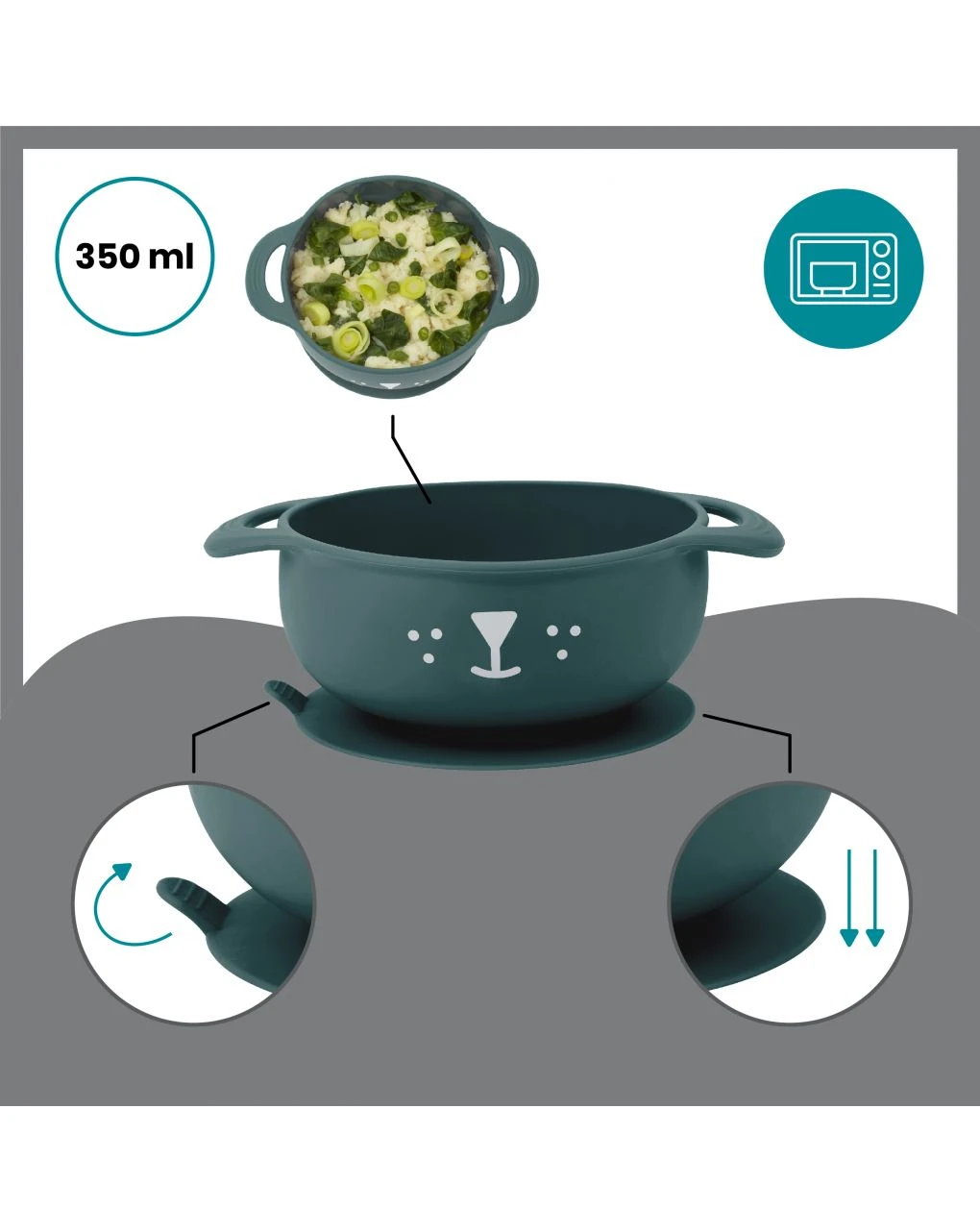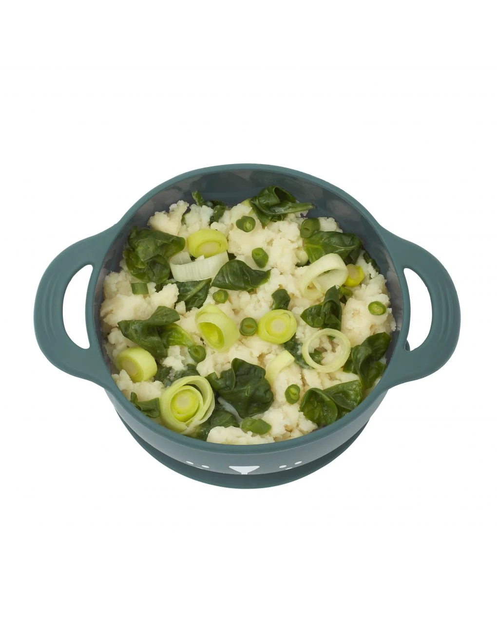 Ciotola in silicone resistente con ventosa antiscivolo. Adatto a microonde, forno e lavastoviglie.