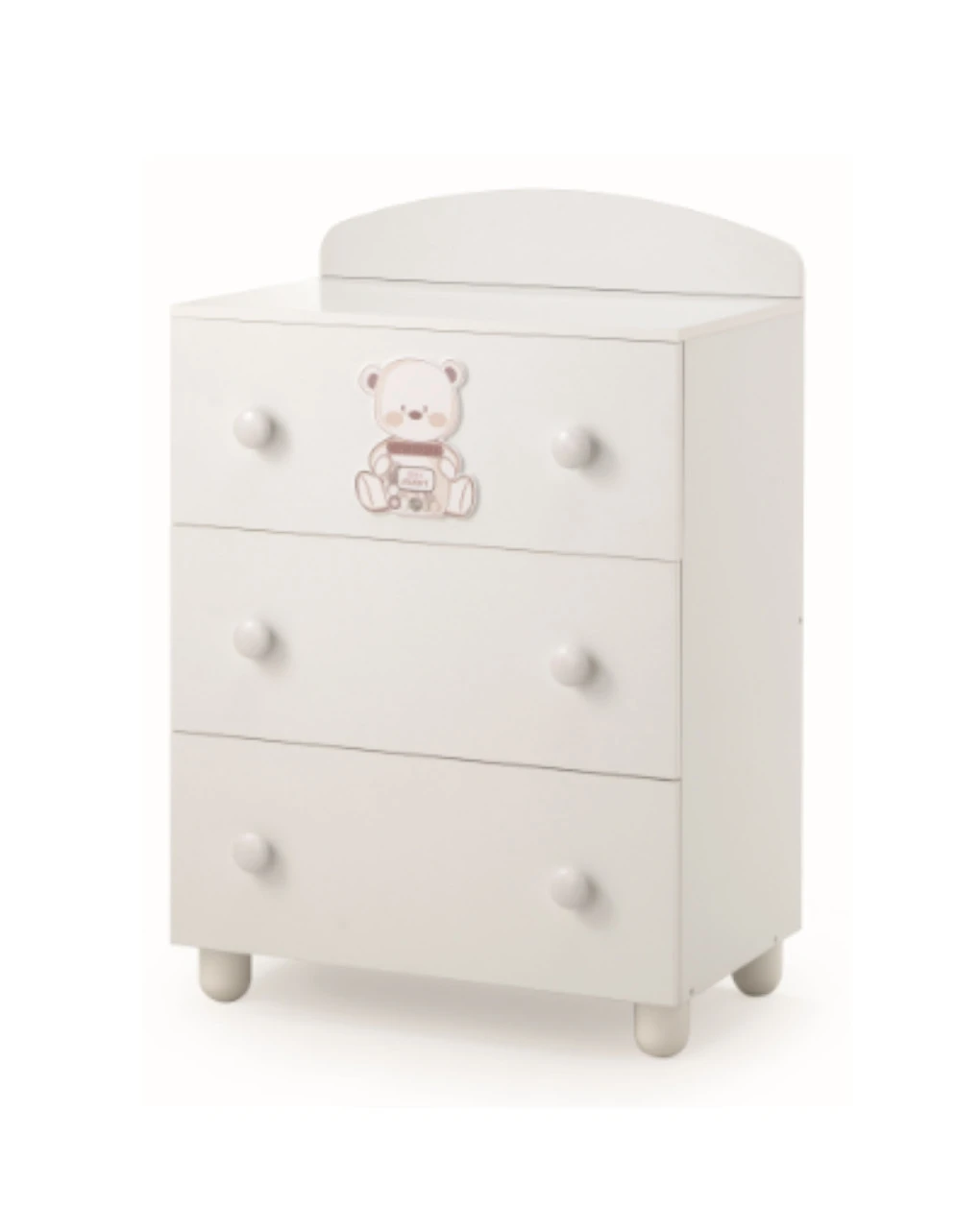 Comò realizzato con pannelli in legno truciolare nobilitato bianco ed è dodato di 3 comodi cassetti.