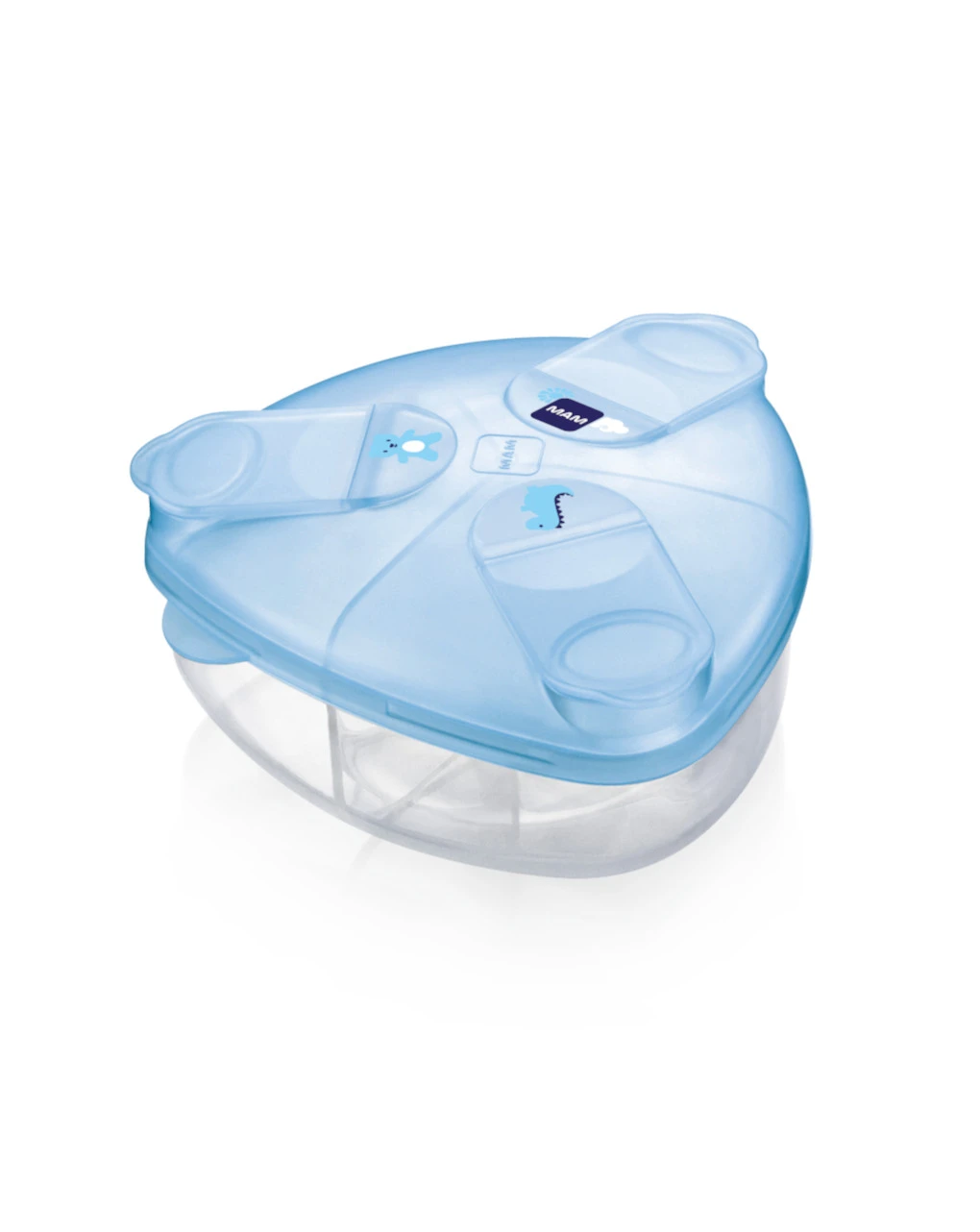 Quando si è in giro è fondamentale avere sempre con sé tutto l’occorrente per il bebè, e portare latte in polvere e integratori può diventare complicato. Per risolvere il problema la soluzione migliore è Milk Box contenitore latte in polvere, un accessorio, moderno, originale e del tutto affidabile. Suddiviso in tre comodi scomparti da 40 g di capacità ciascuno, il porta latte in polvere è leggero e poco ingombrante, tuttavia molto capiente. La particolare forma triangolare rende più semplice versare completamente il contenuto nel biberon, mentre il tappo anti-goccia a scatto assicura un uso facile, senza perdite di prodotto. La forma piatta si adatta a qualsiasi tipo di borsa, rendendo il trasporto semplice. Ciascuno scompartimento può contenere una giusta porzione di latte in polvere e grazie alla base trasparente i genitori possono sempre controllare il contenuto.