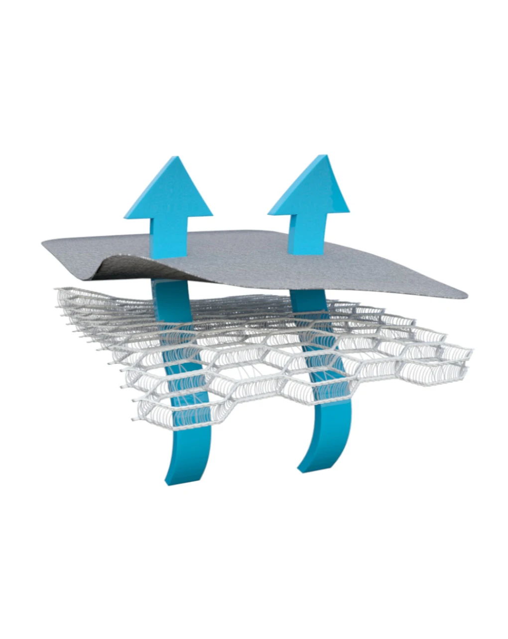 Grazie alla struttura interna 3D l’aria circola liberamente allontanando calore e umidità e garantendo una seduta sempre fresca e asciutta.