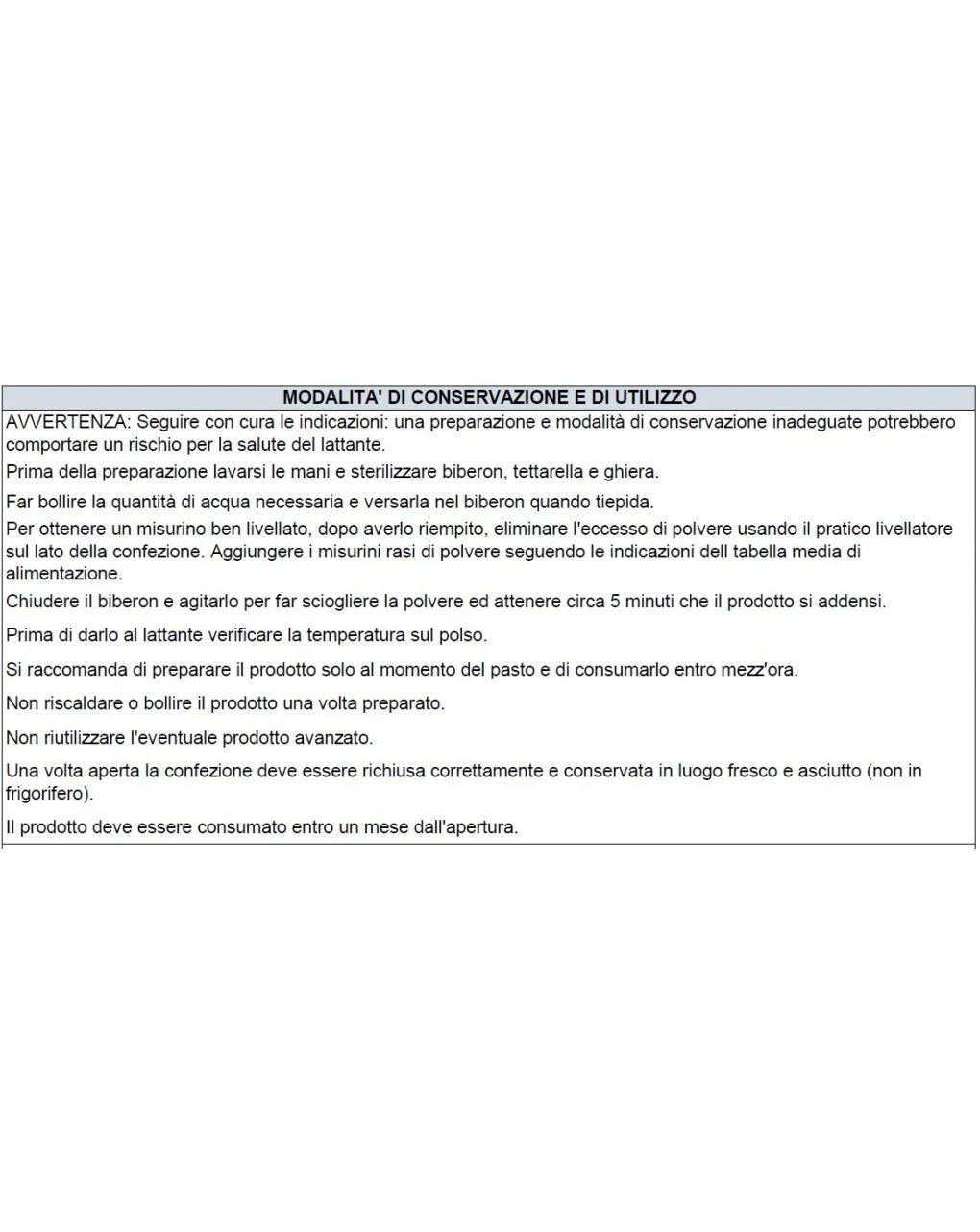 Il prodotto deve essere utilizzato sotto il controllo del Pediatra. Il prodotto è indicato per lattanti dalla nascita al sesto mese e può essere utilizzato come