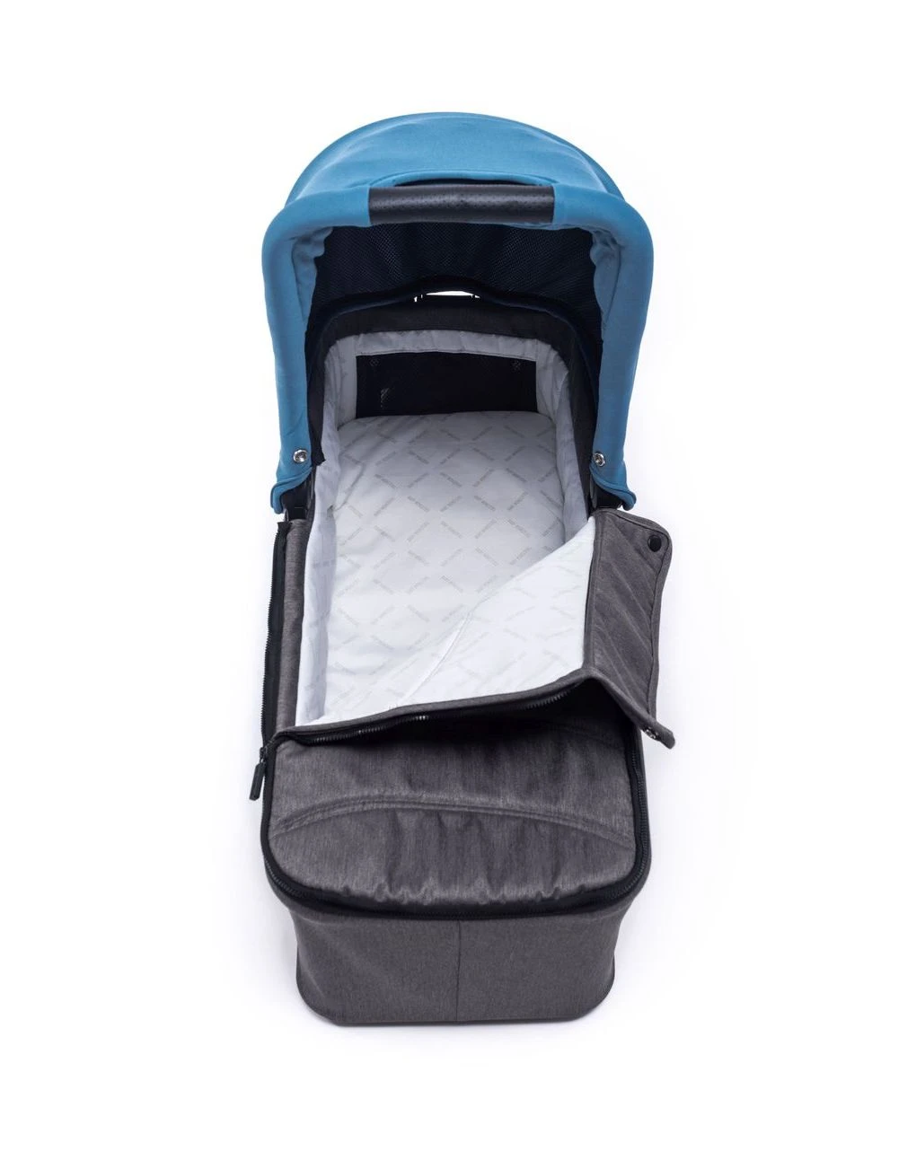 È dotato di un materasso con speciale tessuto anallergico in fibra di bambù, che impedisce la sudorazione nelle giornate più calde. Navicella con tessuto in neoprene elasticizzato, impermeabile e con fattore di protezione solare UPF 50+. Dotata di una cerniera per estenderla ed espanderla, realizzata in tessuto a rete 3D che consente la ventilazione interna.