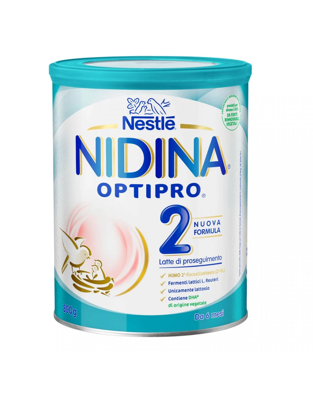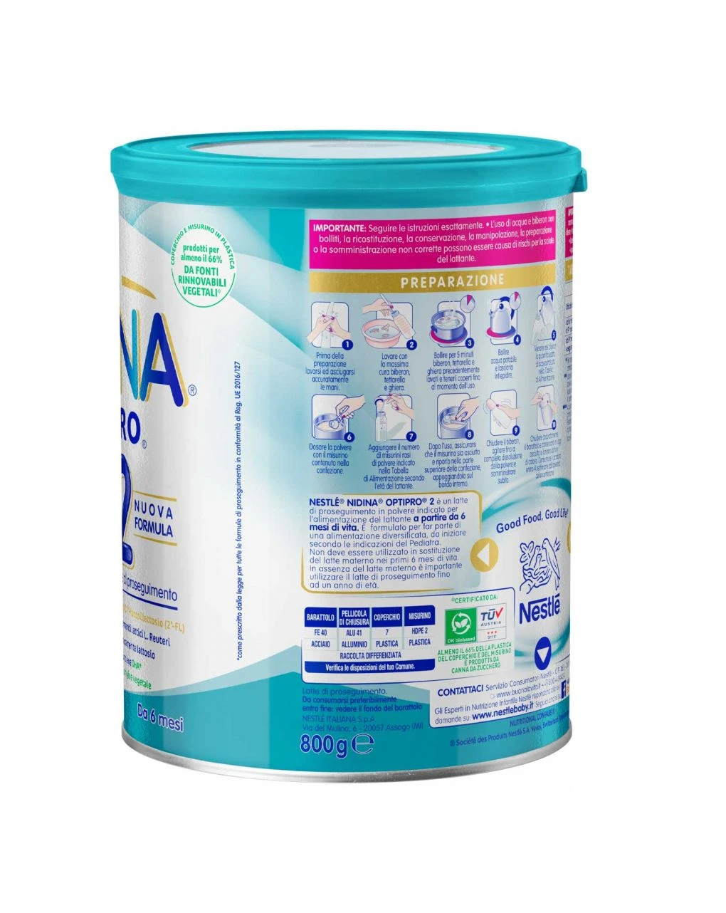 NESTLÉ NIDINA OPTIPRO 2 è un latte di proseguimento in polvere indicato per l’alimentazione del lattante a partire da 6 mesi di vita. È formulato per far parte di una alimentazione diversificata, da iniziare secondo le indicazioni del Pediatra. Non deve essere utilizzato in sostituzione del latte materno nei primi 6 mesi di vita.