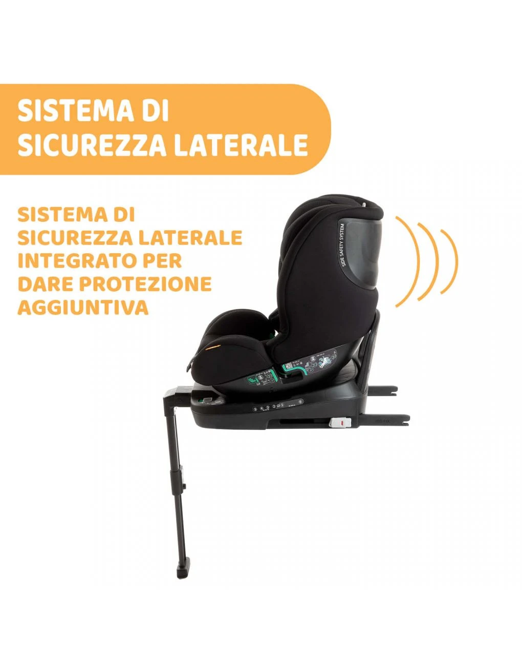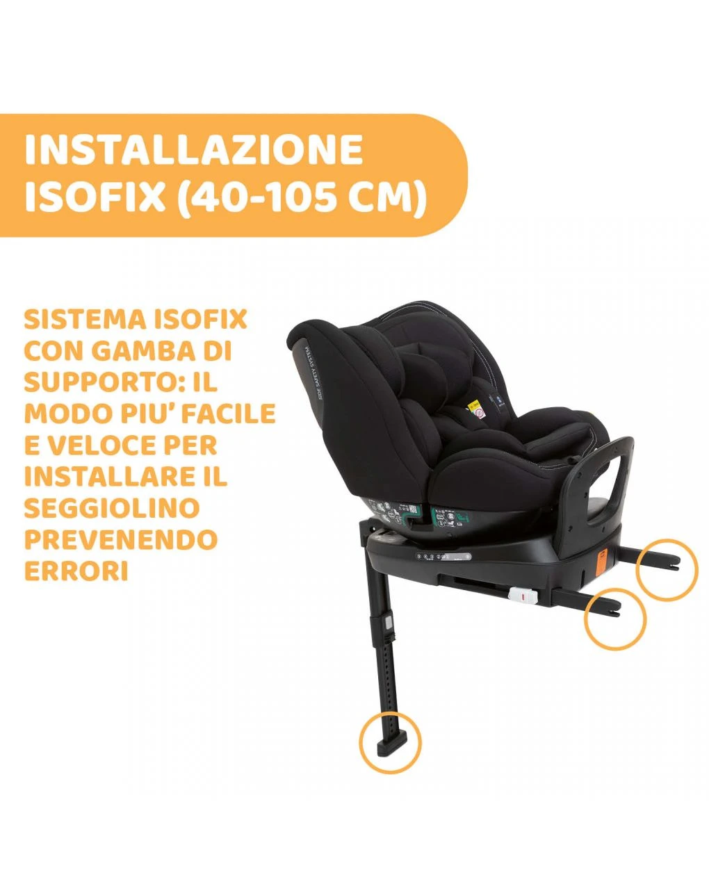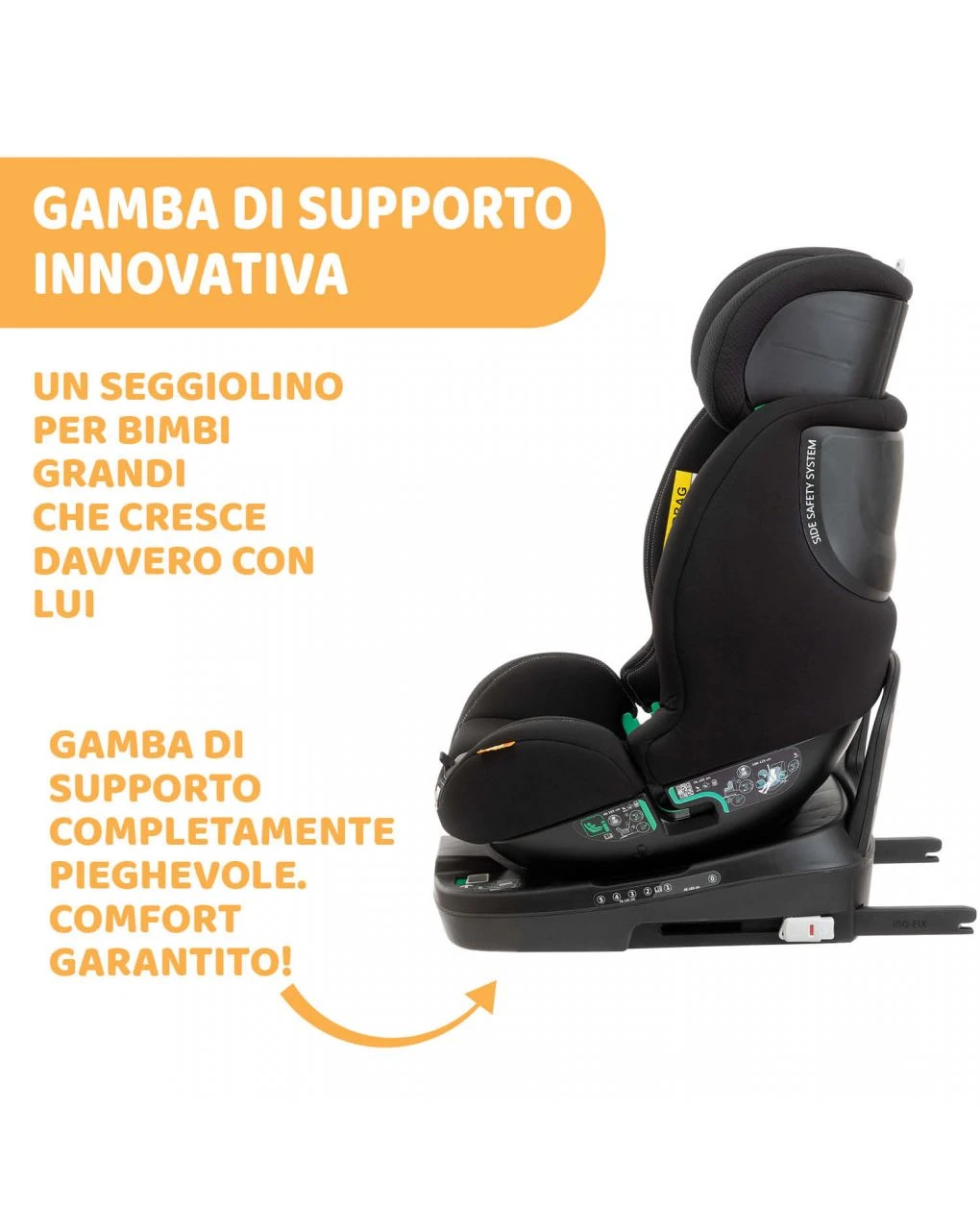 – Support Leg ripegabile sotto la base, trasformando il seggiolino in un vero e proprio rialzo con schienale