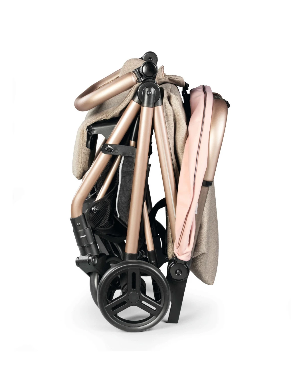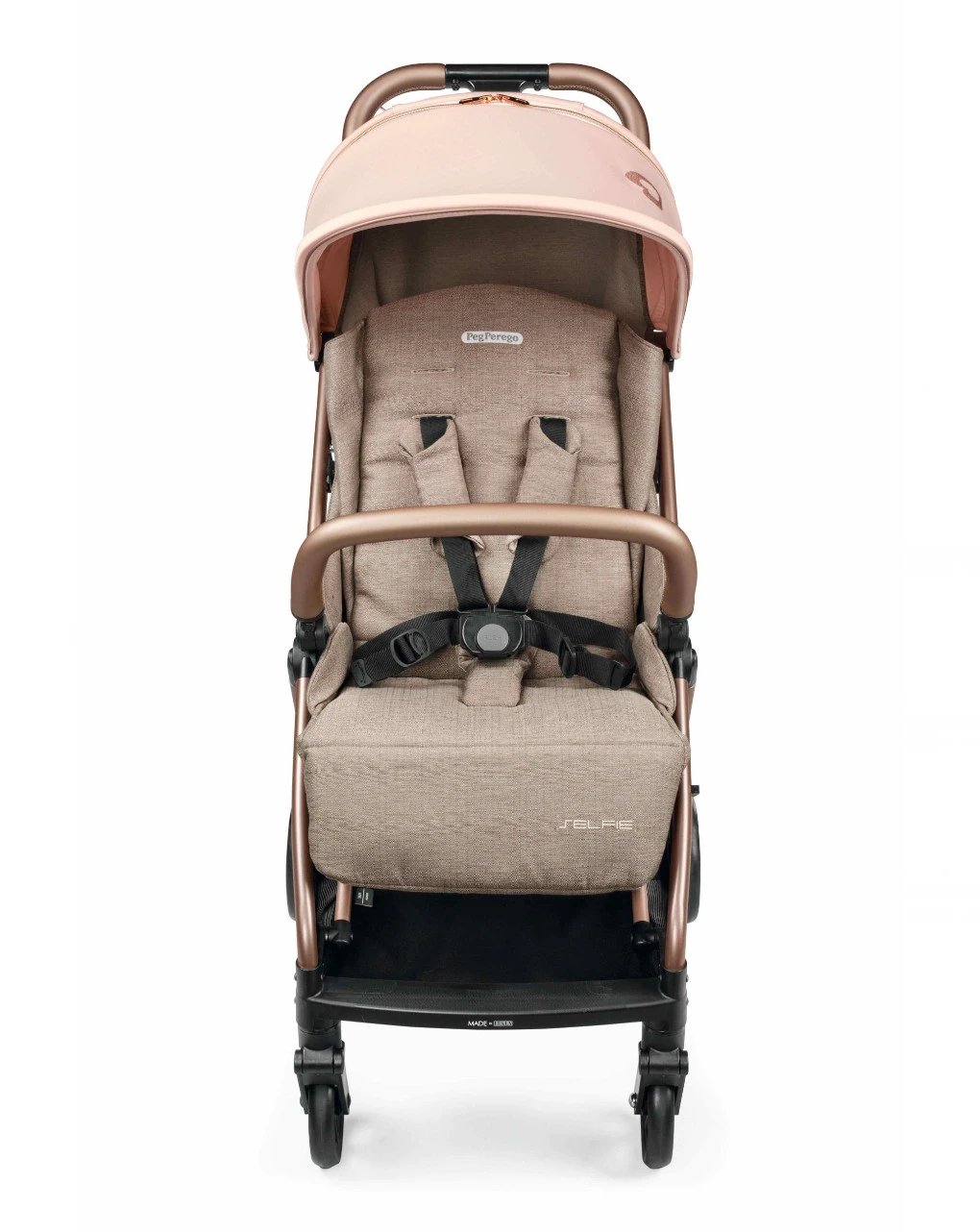 Il passeggino omologato dalla nascita fino ai 15 kg, leggero e compatto, con chiusura automatica è stato progettato e prodotto totalmente in Italia. Comodo da guidare e si apre e si chiude con una sola mano. Ottime prestazioni anche sui terreni più sconnessi grazie all’ off-road, garantite dai molleggi anteriori e posteriori e dalle ruote anteriori piroettanti e con cuscinetti a sfera. Inoltre si chiude da solo con una chiusura automatica e compatta, schienale reclinabile con una mano sola a più di 150° guida facile Easy Drive, ruote con molleggio e cuscinetti a sfera frontalino apri-chiudi in ecopelle removibile; diventa diventa Travel System con adattatore e Ovetti Peg Perego (compreso il nuovo LOUNGE i-Size reclinabile) maniglione in ecopelle, si guida con una sola mano telaio in alluminio, solido e leggero (6,4 kg) e cestello porta tutto capottina UPF 50+ cinturine di sicurezza con spallacci a 5 punti regolabili.