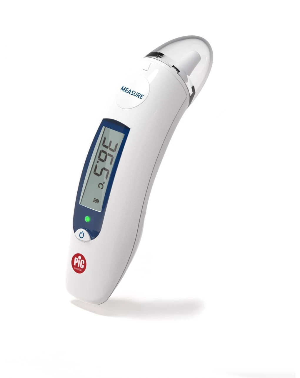 ThermoDiary EAR è il termometro a infrarossi per la misurazione auricolare della temperatura, che puoi sincronizzare con il tuo smartphone, oppure utilizzare come un normale termometro. In un semplice gesto, misura la temperatura del tuo bambino: discreto e veloce, è sufficiente inserirlo delicatamente nell’orecchio e premere un tasto, per avere in pochi secondi il valore della temperatura. Il grande display rende facile la lettura, mentre l’indicatore febbre ti segnala rapidamente se la temperatura è alta (led rosso) o nella norma (led verde). E se il tuo bambino dorme, la modalità silenziosa permette di eseguire la misurazione senza svegliarlo. ThermoDiary EAR è sincronizzabile con Pic Health Station, l’App di Pic che memorizza, gestisce e condivide tutti i valori e le rilevazioni per creare un diario della febbre sempre disponibile sul tuo smartphone. Un’interfaccia semplice e intuitiva, che una volta installata ti permette di: memorizzare i valori automaticamente; monitorare l’andamento della temperatura; annotare i sintomi e i medicinali e condividere le informazioni facilmente.
