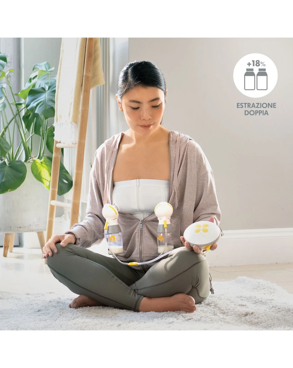 Swing Maxi è il nuovo tiralatte elettrico doppio di Medela, che unisce i benefici della tecnologia 2-Phase Expression, ai vantaggi della batteria ricaricabile integrata – in un nuovo design moderno. L’estrazione doppia ti consente di ottenere fino al 18% di latte in più, in meno tempo.